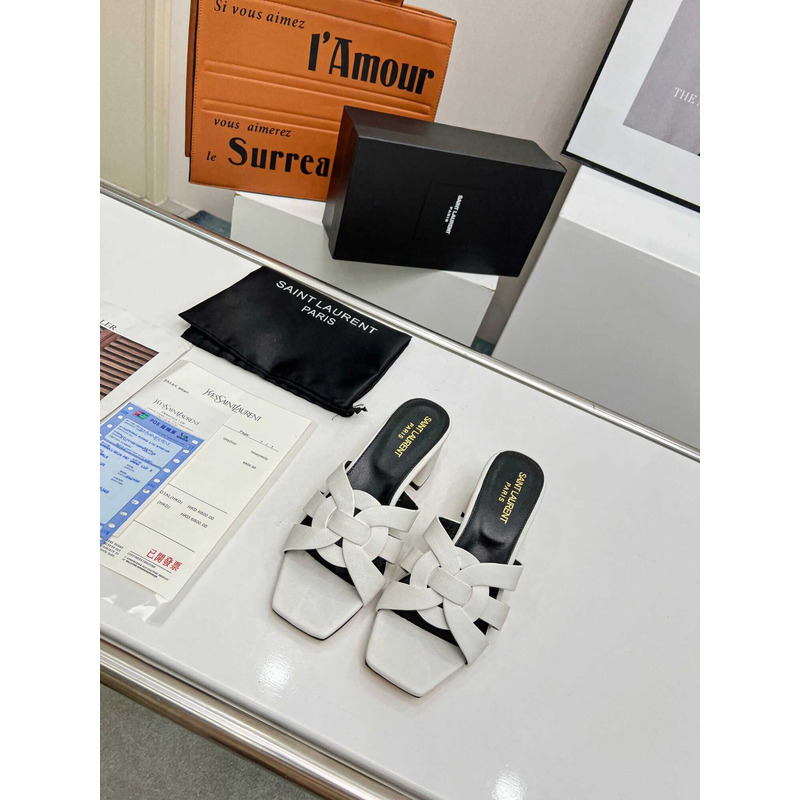 Saint Laurent Tribute Denim Mid-heel Mule Shoes White