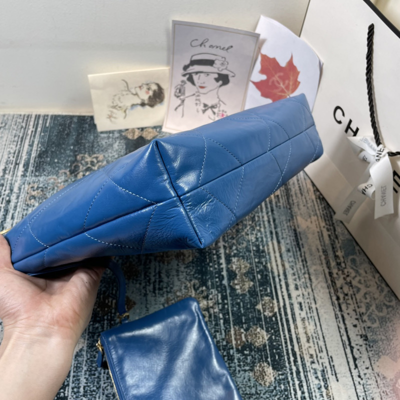Ch*el 22 handbag shiny calfskin gold-tone & metal navy