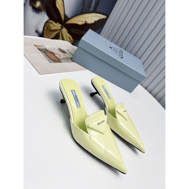 Pra*a logo patent leather pointy toe mule slide light yellow