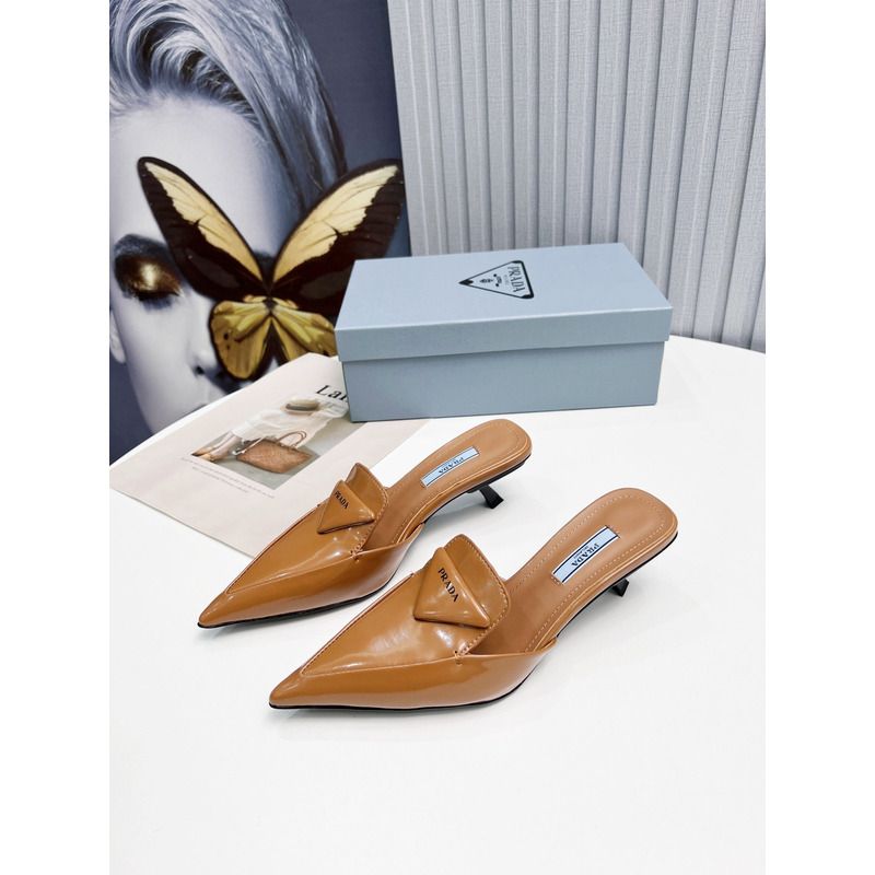Pra*a women\''s white triangle logo plaque slip-on sandals