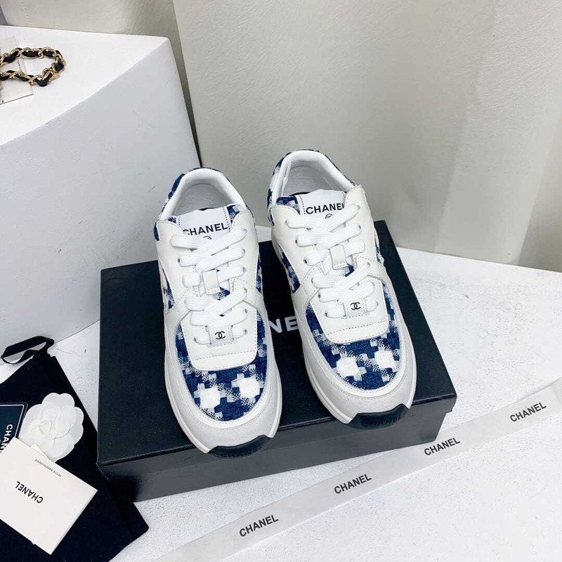 Ch*el sneakers tweed, suede calfskin grey and blue