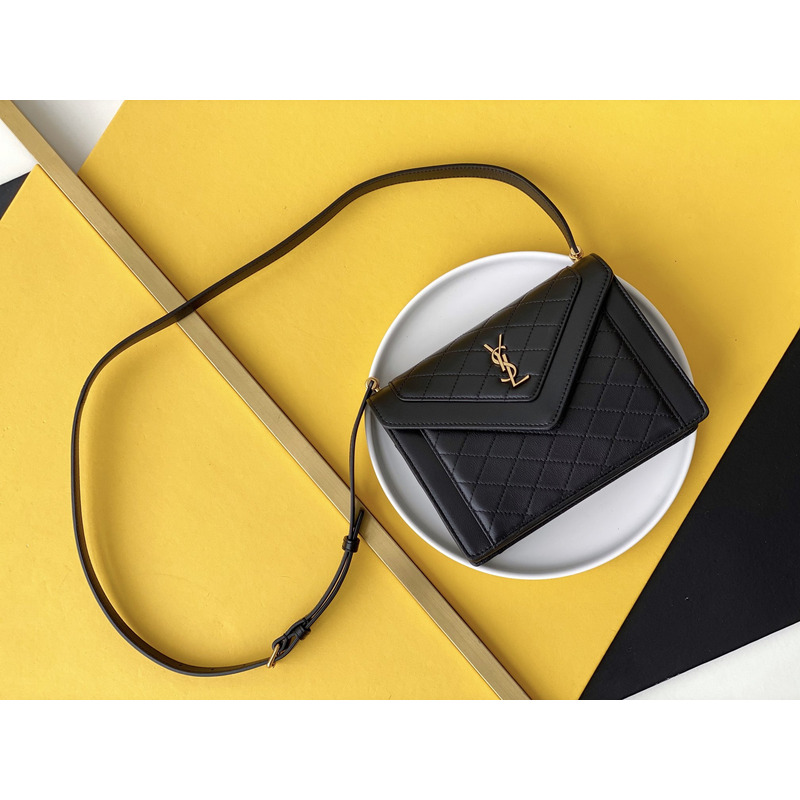 Saint LaurentYSL GABY Mini Quilted Textured Envelope Bag Sheepskin Black