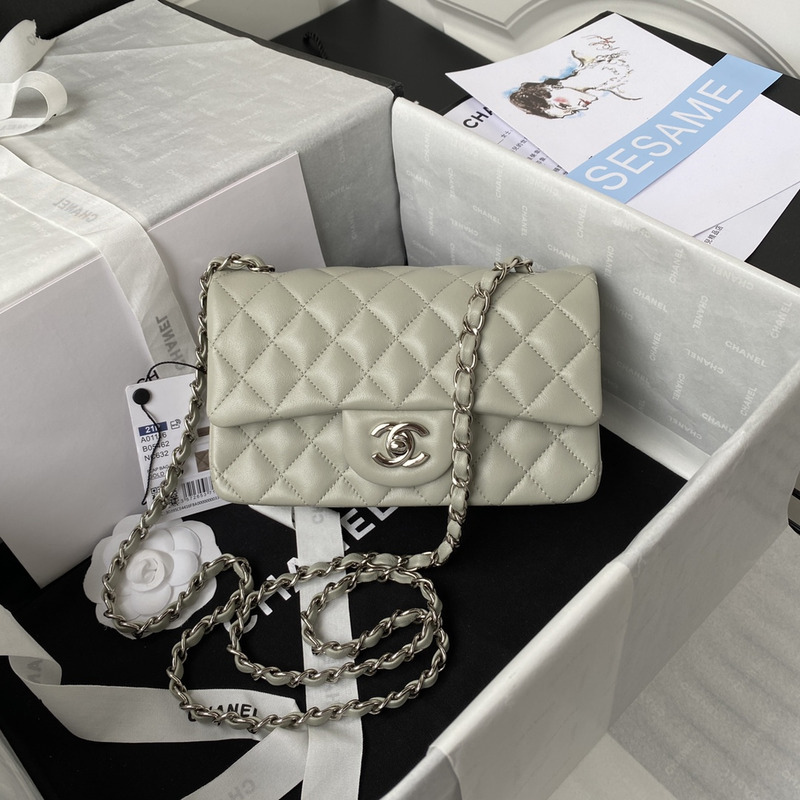 Ch*el classic handbag grained shiny calfskin & gold-tone metal peacock blue