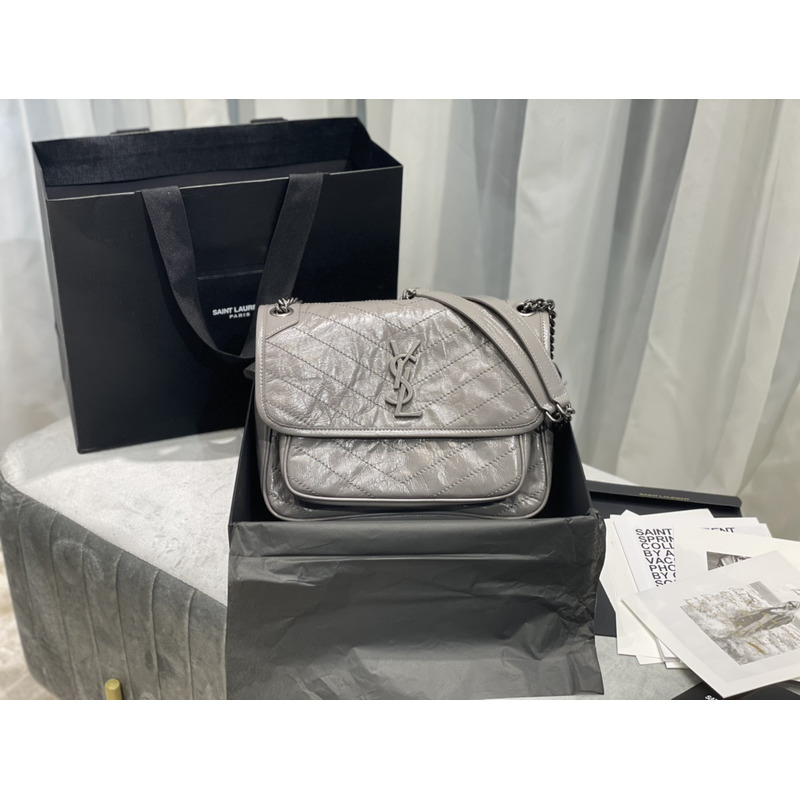 Saint Laurent Niki Baby Crocodile Print Shoulder Bag Grey