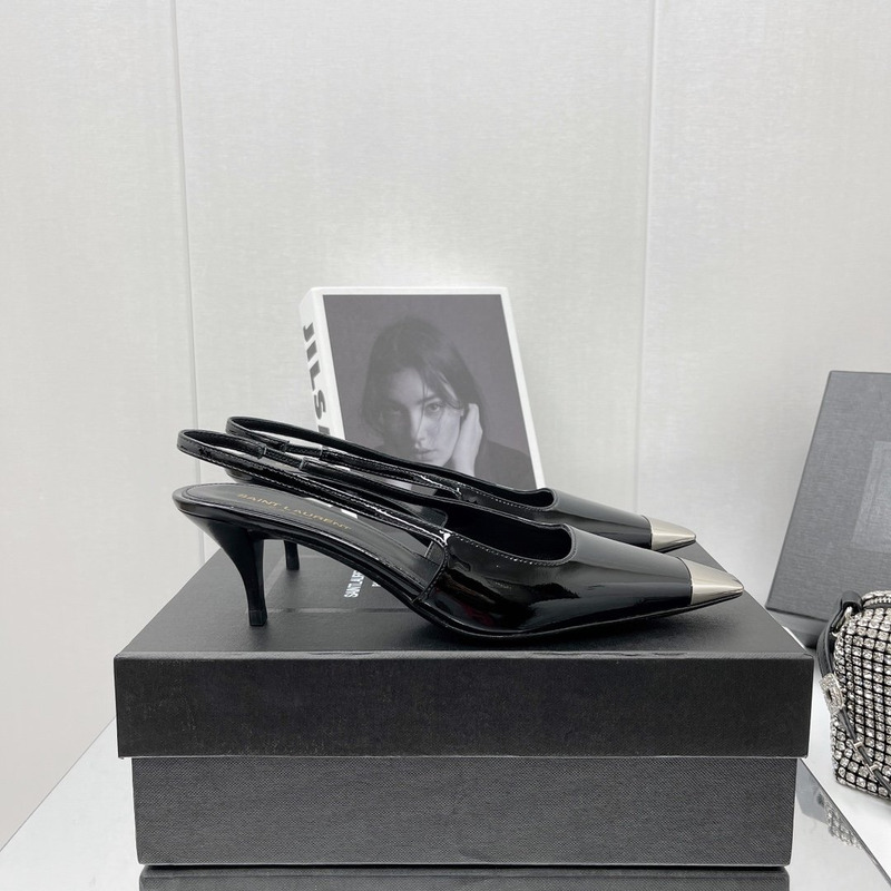 Saint Laurent Blade Metallic Cap Square Toe Leather Pumps Black