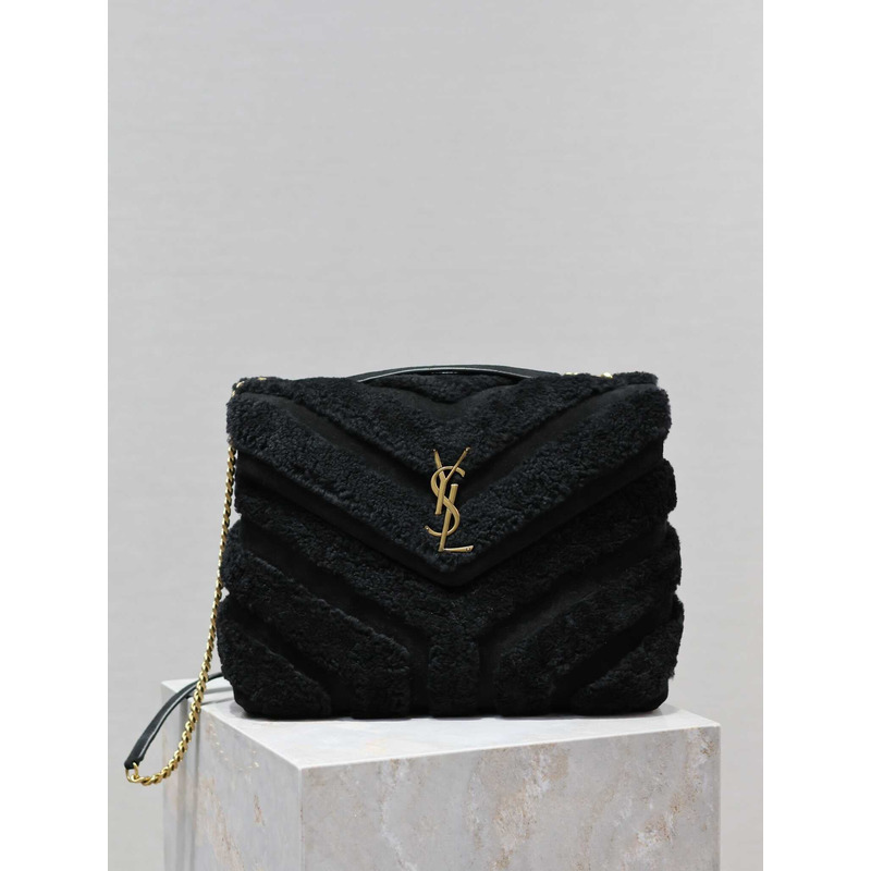 Saint Laurent Small Loulou Puffer Shearling Shoulder Bag Black