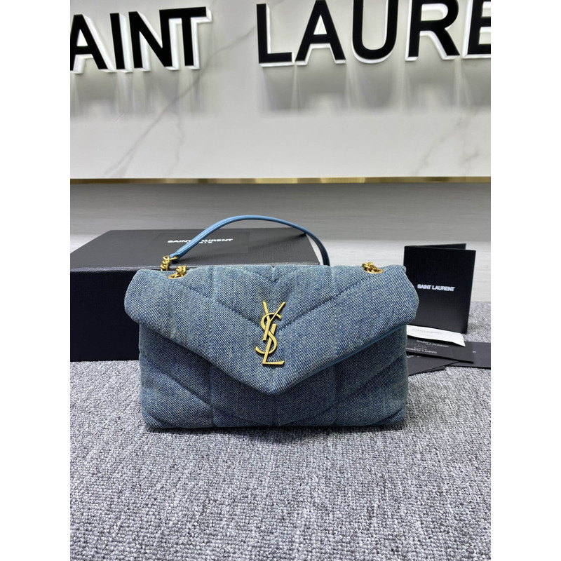 Saint Laurent Puffer Toy Bag Cavas Leather Marine Blue