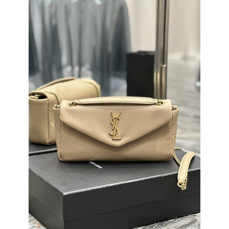 Saint Laurent Calyso Sheepskin Leather Handbag Cream