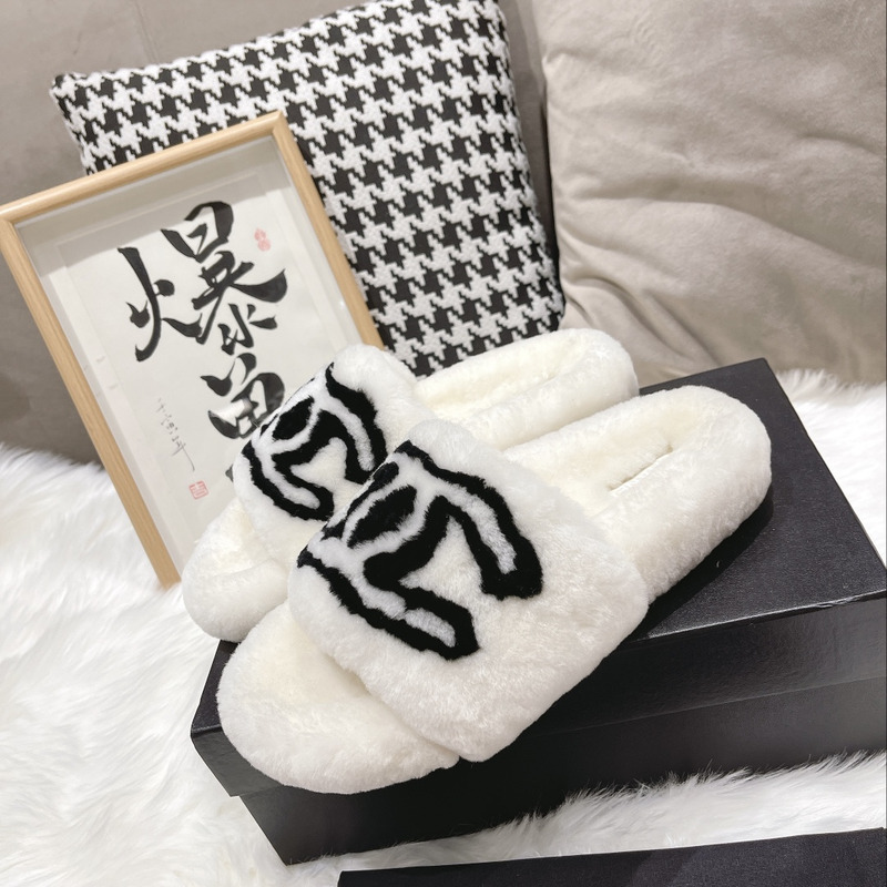 UGG Slippers Women Sheepskin Wool Collar Ankle Platform Black