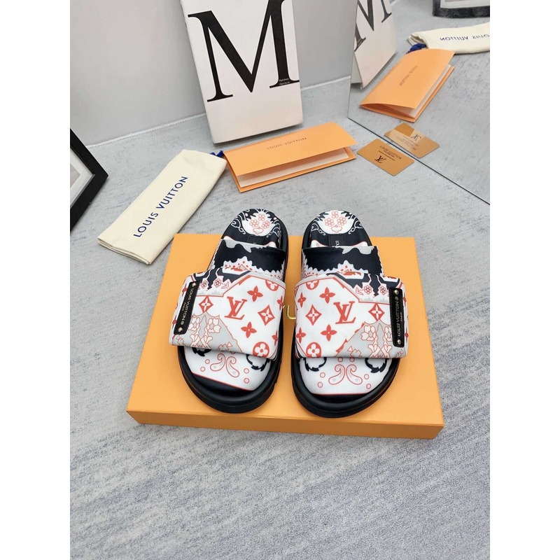 Ch*el lambskin metal diamanté & imitation pearls sandals red