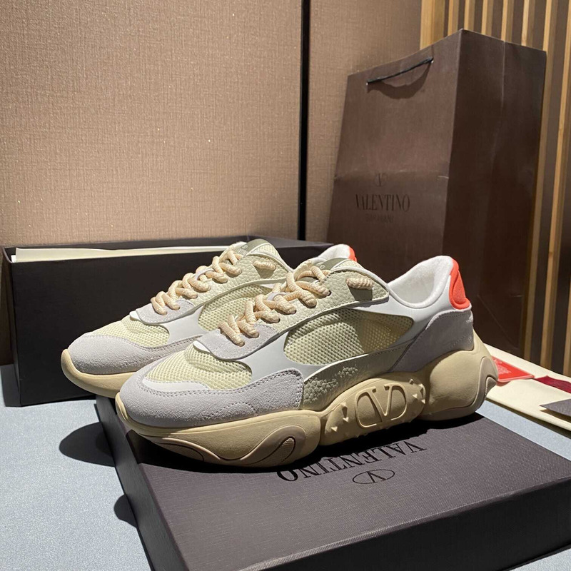 Valentino Garavani Gray And Beige Bubbleback Sneakers