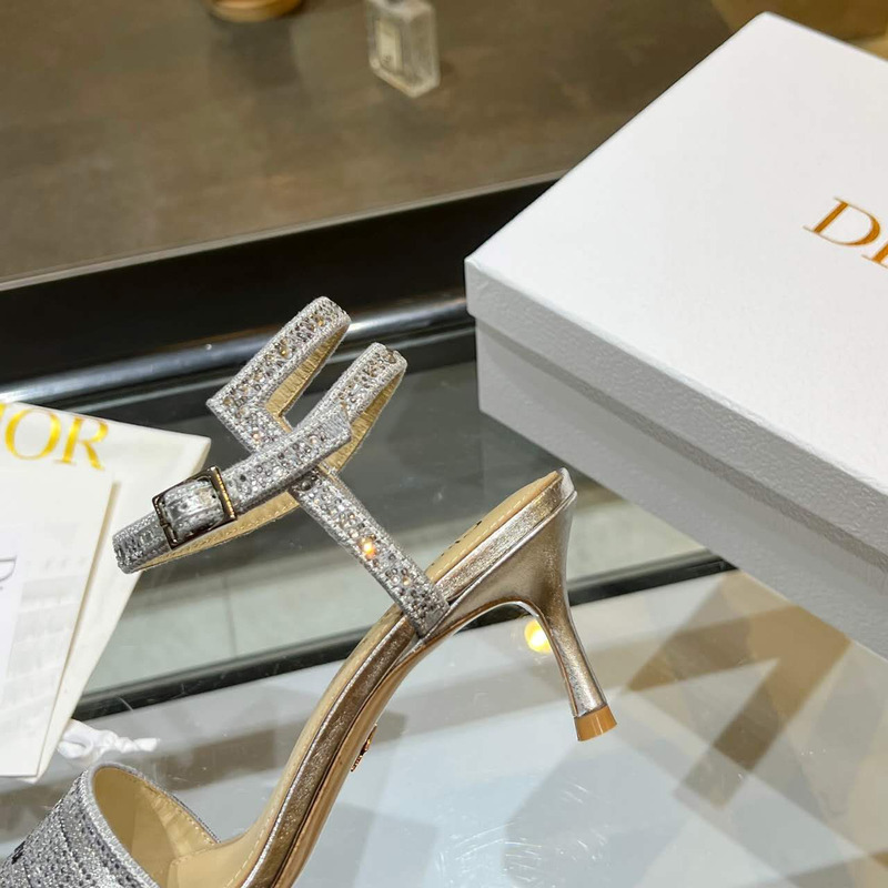 Saint Laurent New Nuit Silk Crystal Stiletto Sandals Blue
