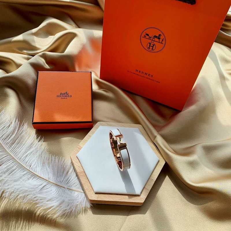 H**mes white enamel gold h buckle bracelet