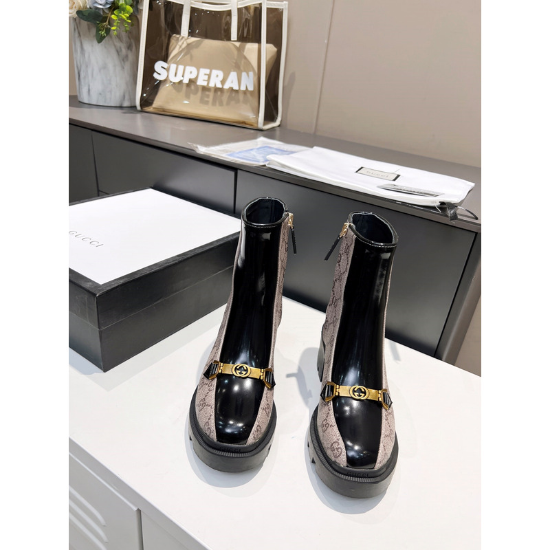 G*u*i interlocking g horsebit leather ankle boots brown
