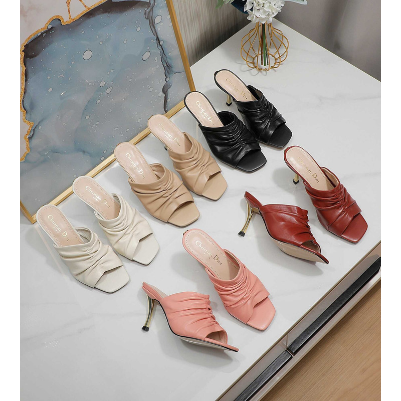 Valentino Ladies Sandals Femininity V Buckle Pointed Toe Low Heel Stilettos White