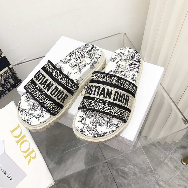 D*or dway slides toile de jouy reverse embroidered cotton white