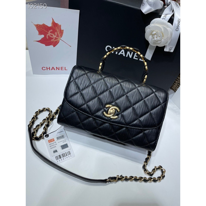Ch*el cc leather wrapped lambskin leather gold hardware handle bag black