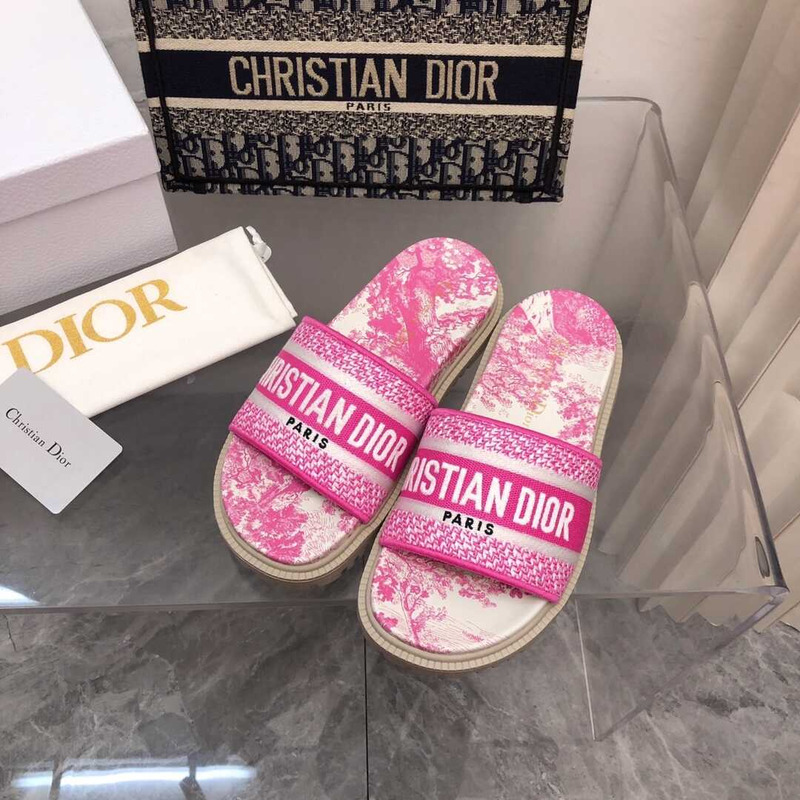 D*or dway slides toile de jouy reverse embroidered cotton rose red