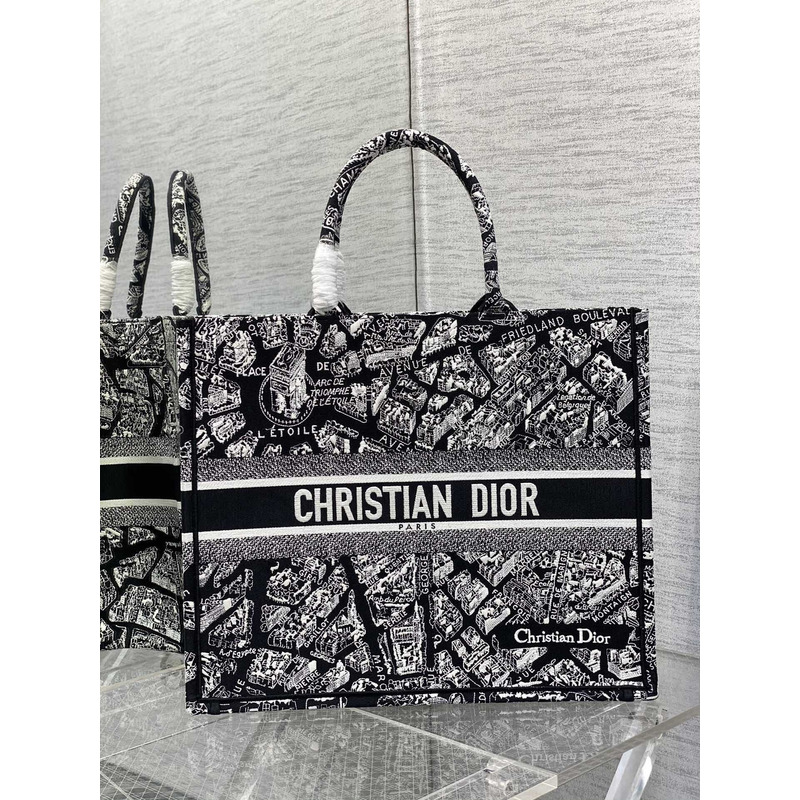 D*or book tote large plan de paris embroidery black