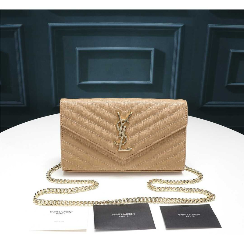 Saint Laurent Women\''s Medium Monogram Matelassé Leather Wallet-on-chain In Beige