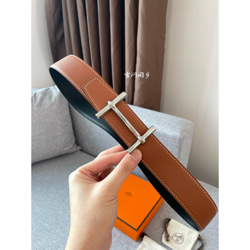 H**mes h d''ancre belt buckle & reversible leather belt 38mm black and brown