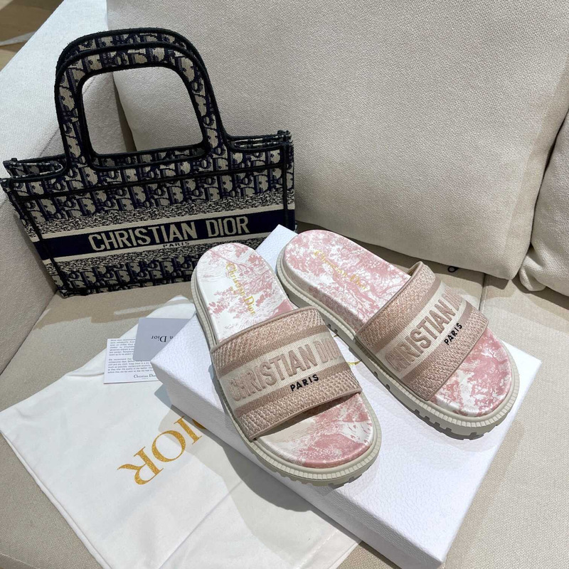 D*or dway slides toile de jouy reverse embroidered cotton beige